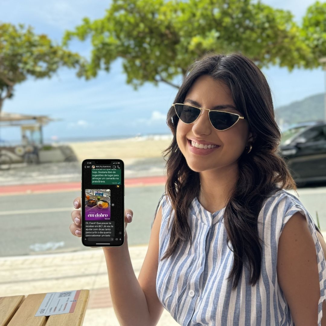 Além de receber as melhores dicas de Balneário Camboriú, a Naila vai te apresentar o Plus Experience, o app que transforma suas saídas gastronômicas em economia com promoções como 'Peça 2 pratos, pague apenas um'!
